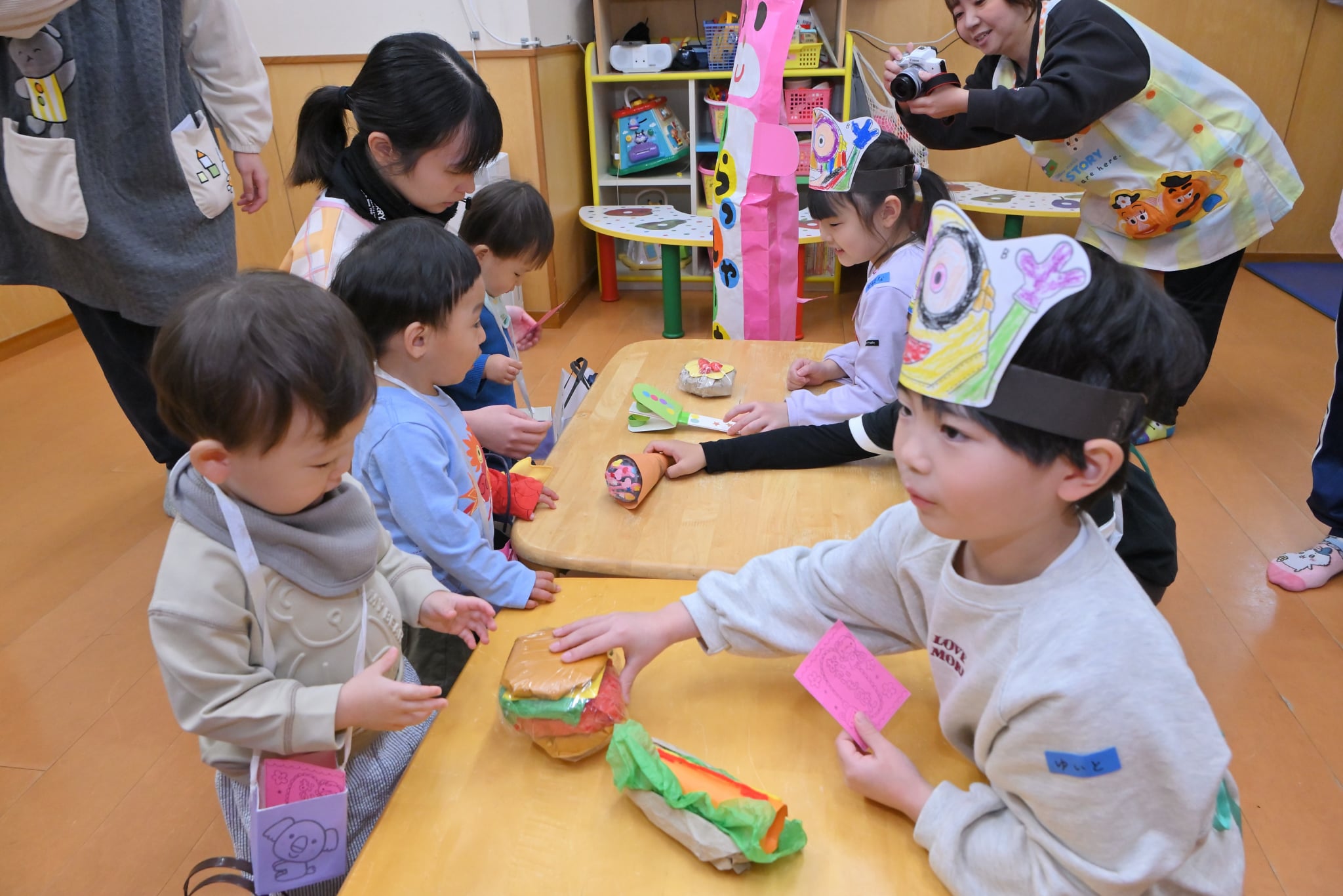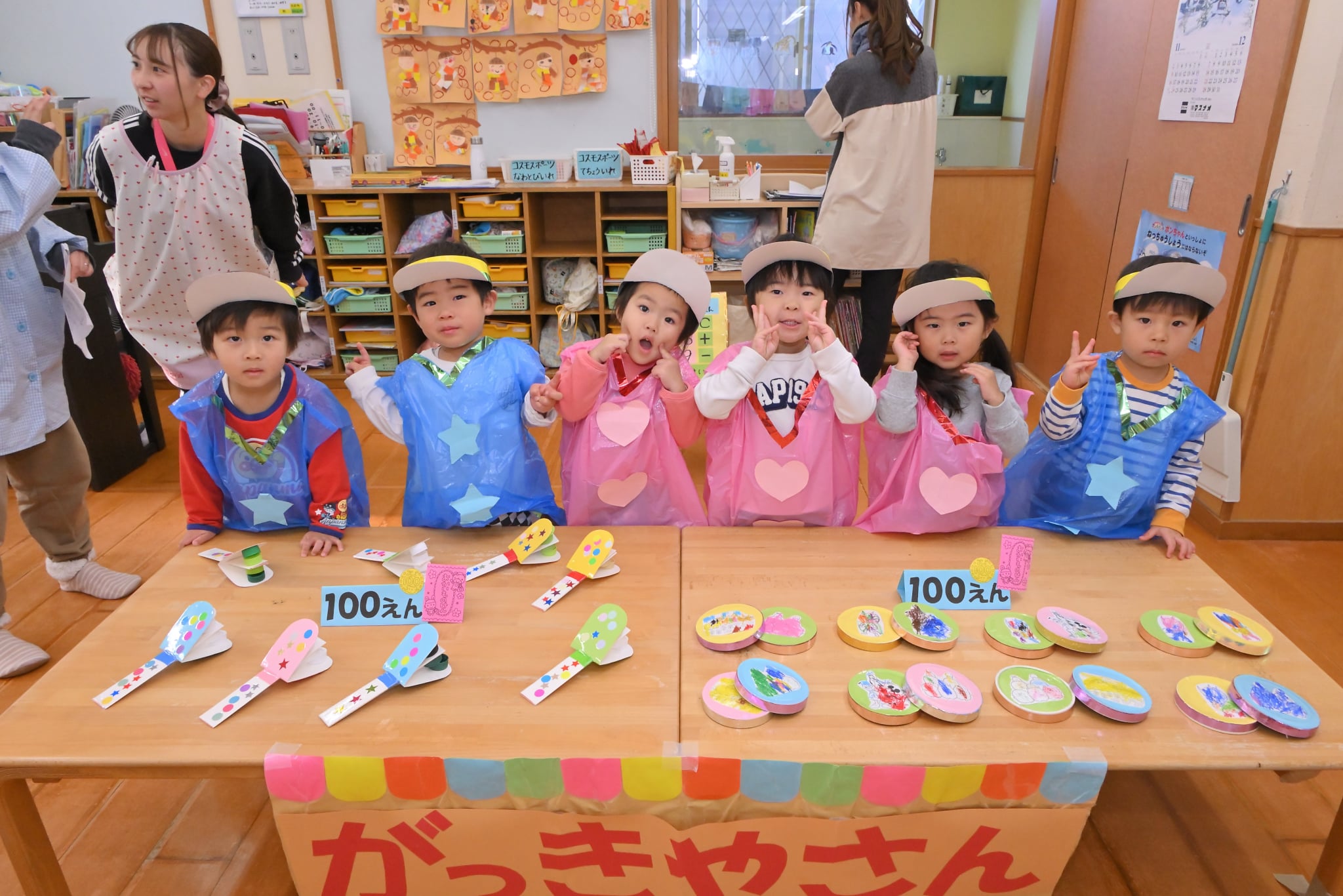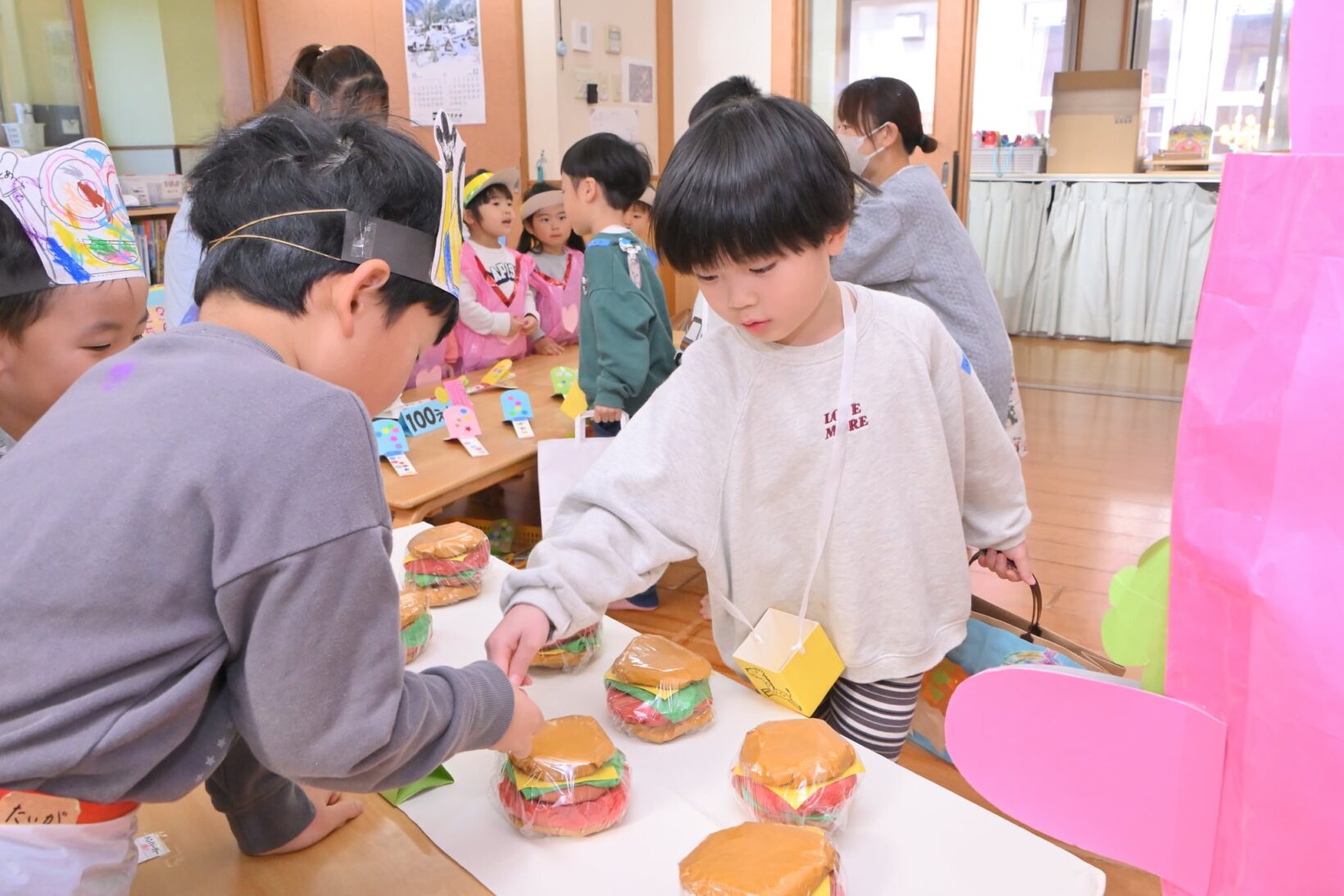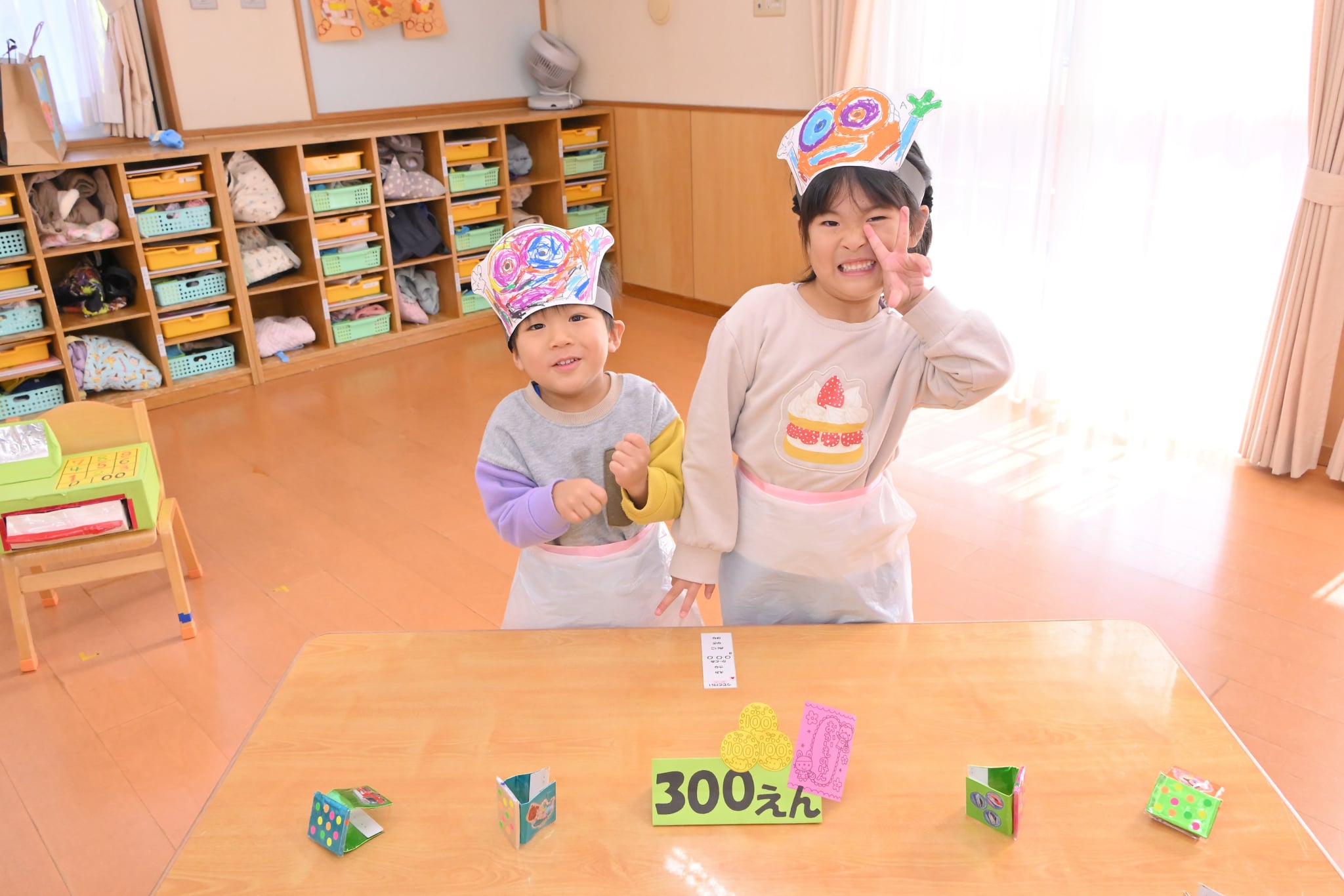 また、うさぎぐみや年中・年少の子どもたちも、お店屋さん役になったり、お客さん役に交代したりしながら、やり取りを楽しむ姿が見られました。