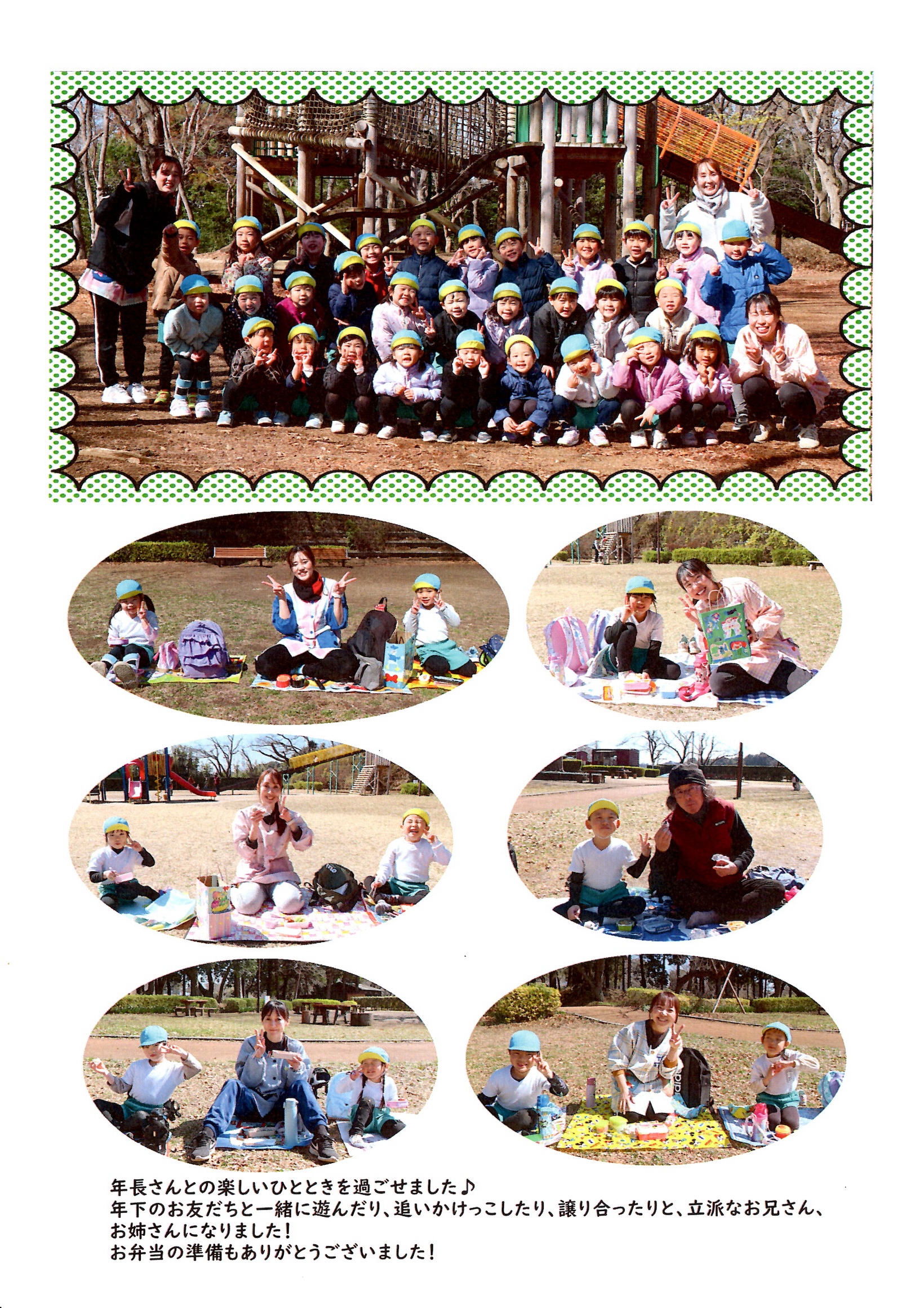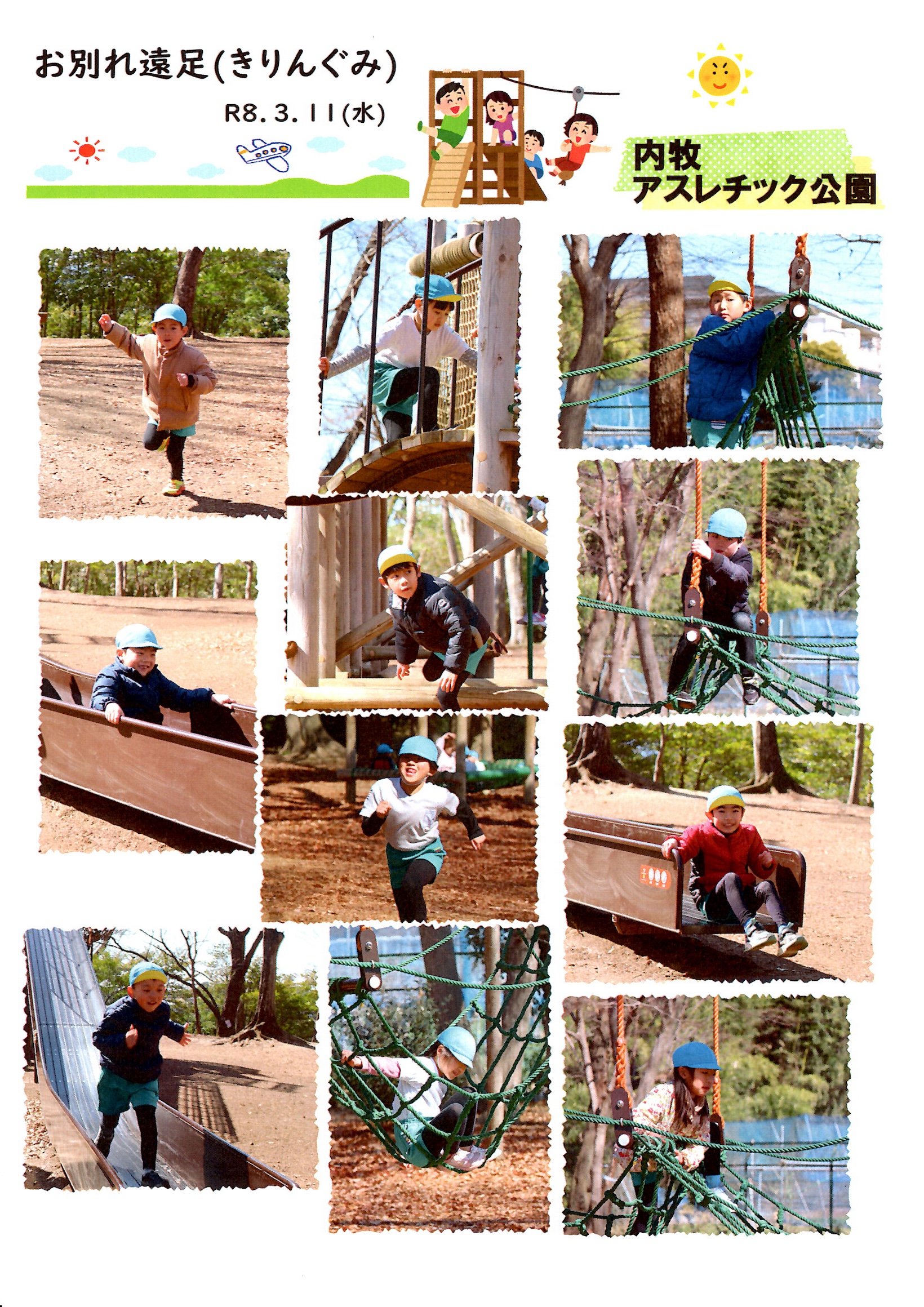 3月11日、きりんぐみ(年少・年中・年長)の子どもたちが、お別れ遠足で内牧公園へ出かけました。