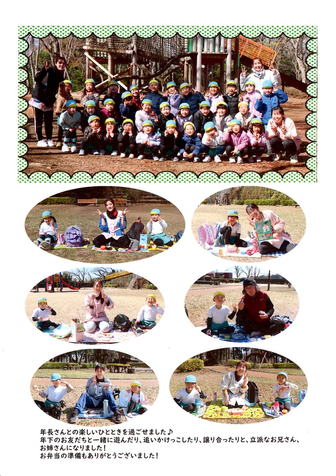 もうすぐ卒園を迎える年長さんと一緒に過ごした、思い出いっぱいの一日となりました。みんなで遊んで、本当に楽しかったね。