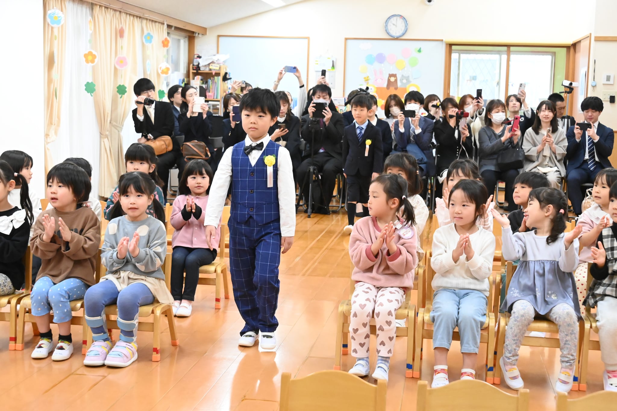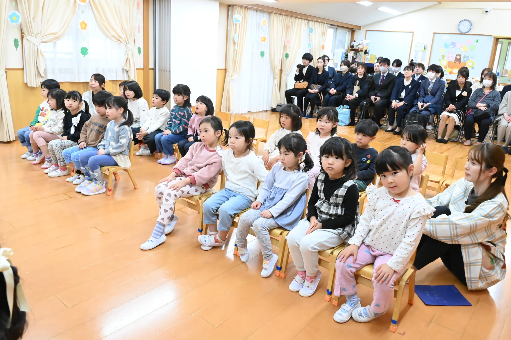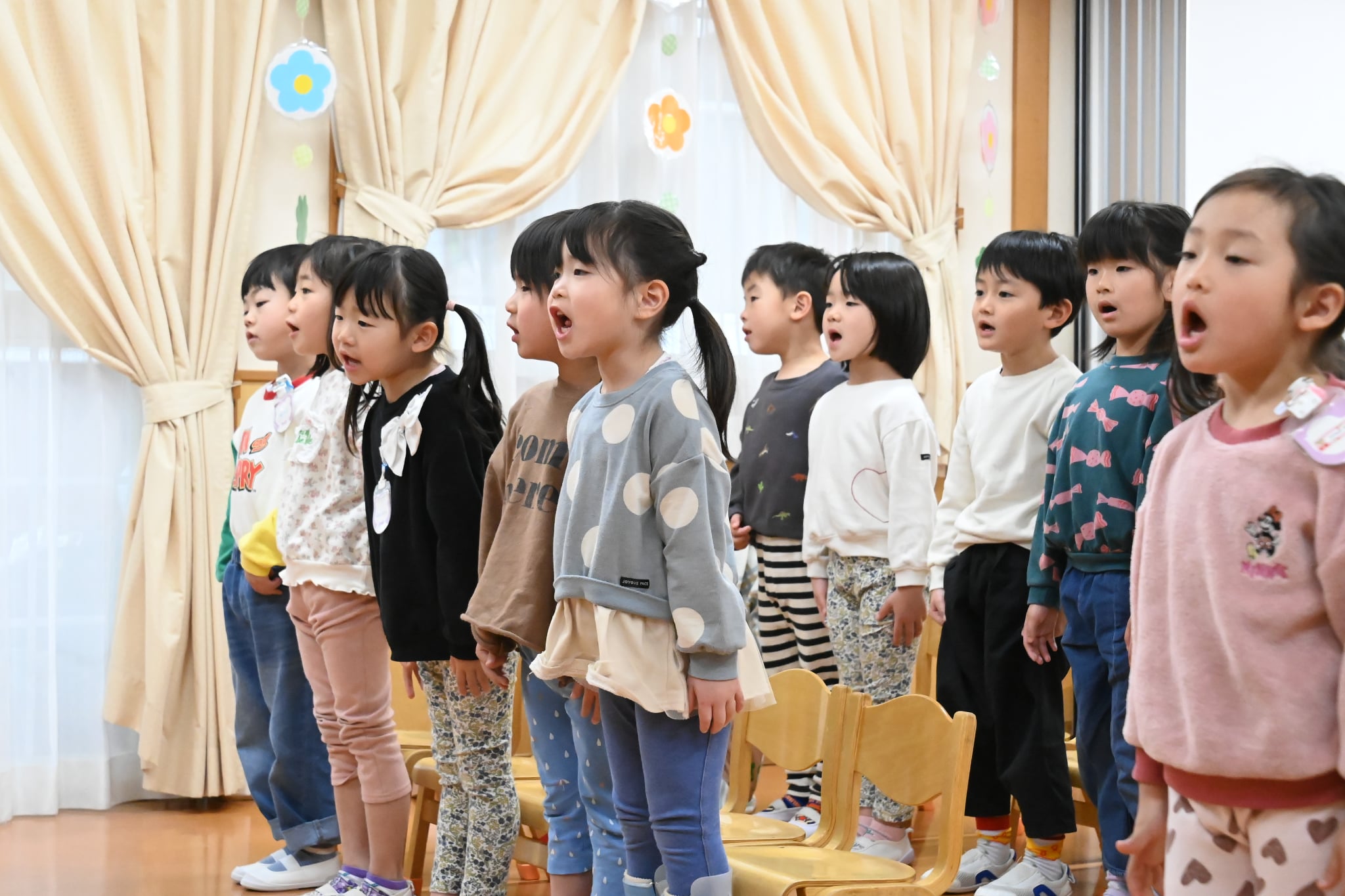 最後に「さよならぼくたちのほいくえん」を歌うと、これまでの思い出があふれ、少しさみしくなって涙を見せる子どもたちの姿も見られました。温かく、心に残るひとときとなりました。