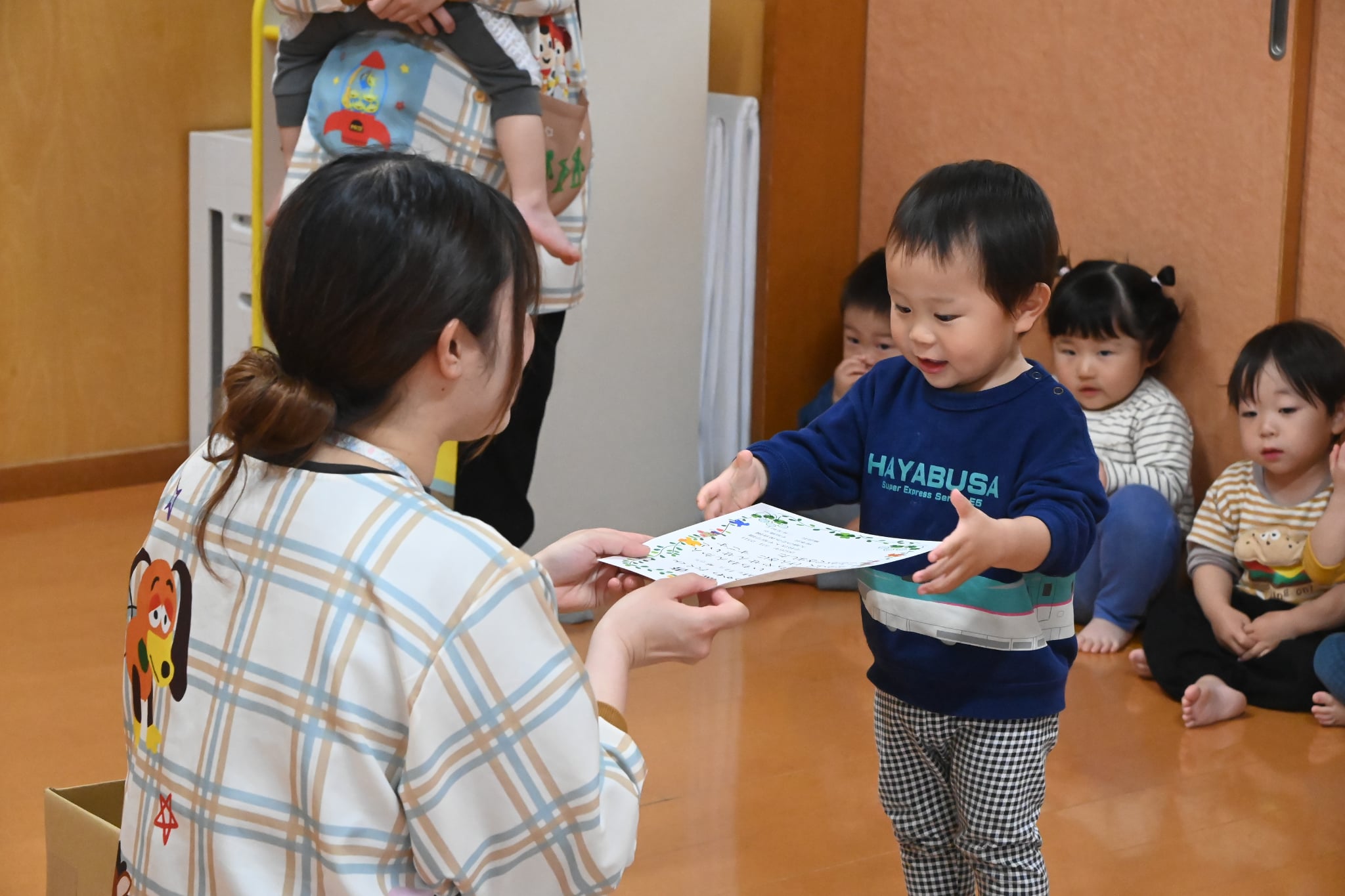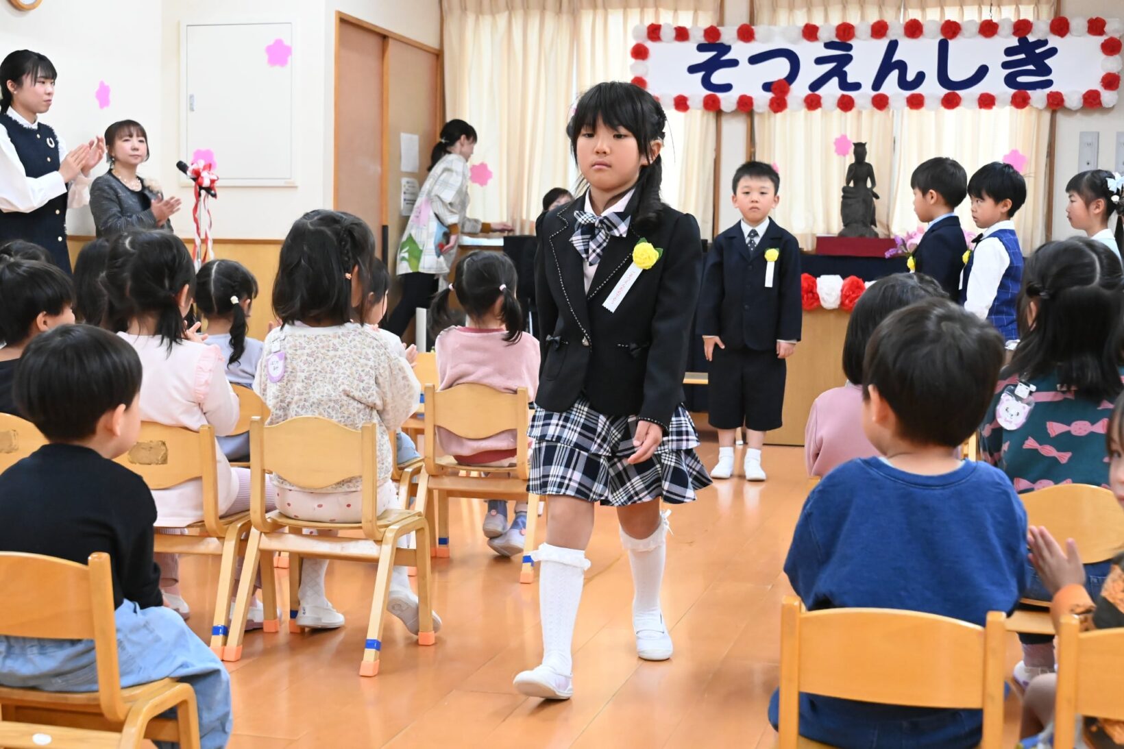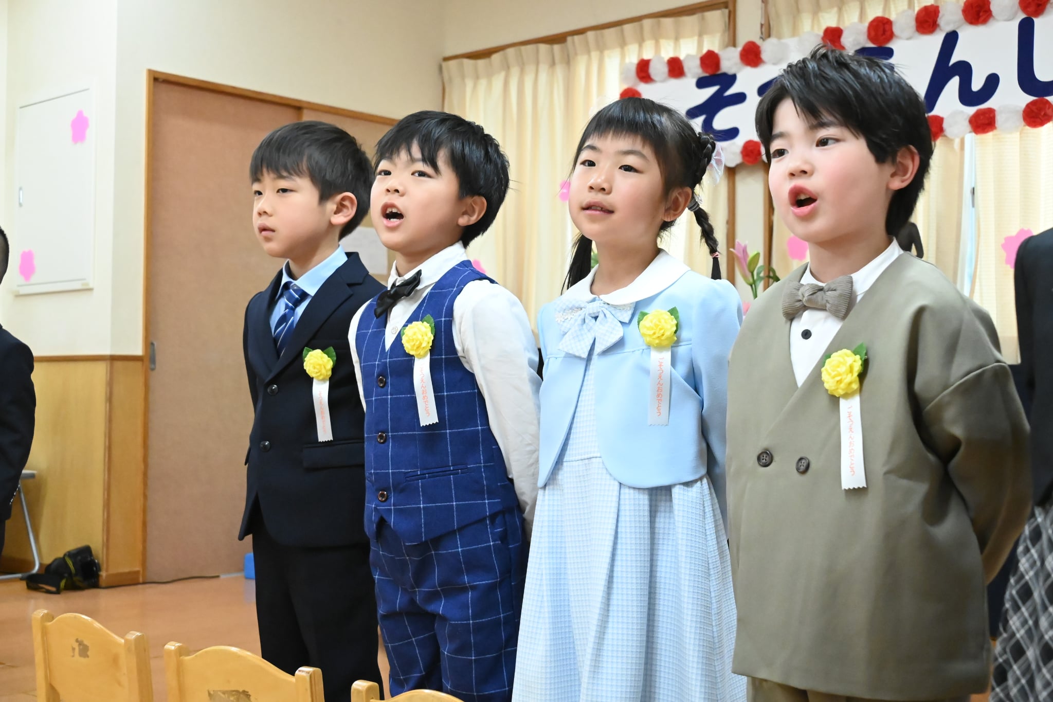 最後に「さよならぼくたちのほいくえん」を歌うと、これまでの思い出があふれ、少しさみしくなって涙を見せる子どもたちの姿も見られました。温かく、心に残るひとときとなりました。
