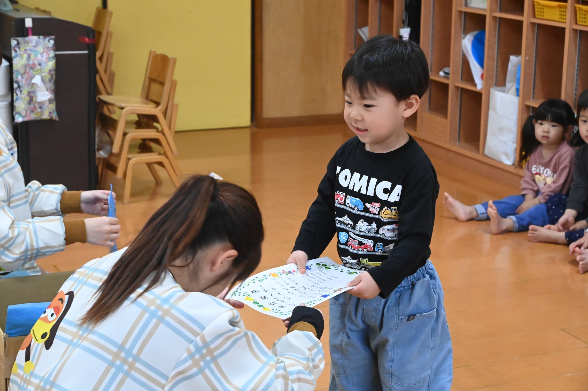 午後からは、在園児による修了式を行いました。クラスの先生から賞状と記念品を受け取り、この一年の成長を感じる時間となりました。